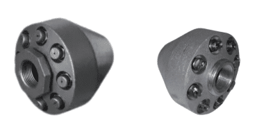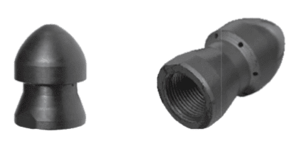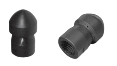 Boquilla para desatascar tuberías obstruidas de 4" a 18" que contienen arena, suciedad o grasa. Fabricado en configuraciones de 15° o 30°; la boquilla, con una conexión FPT de 1", está disponible para máquinas de limpieza de alcantarillado de hasta 80 GPM y hasta 2500 PSI de presión de bomba. Esta boquilla también está disponible en FPT de 3/4".