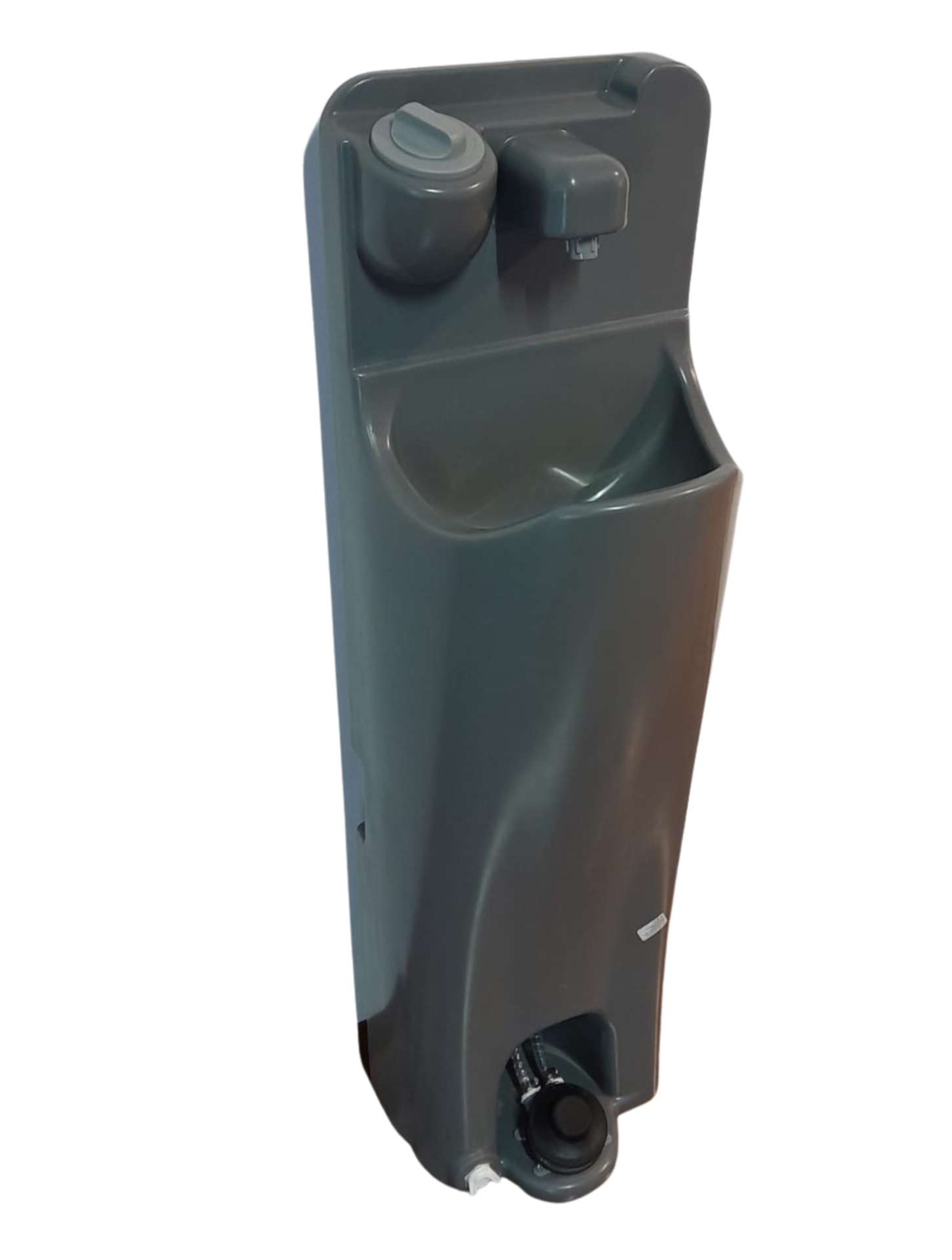 These can be installed anywhere, with their own clean water tank and wastewater collection tank, powered by a foot pump. They are cleaned with tanks and vacuum pumps. They include a soap dispenser and interfolded towels for hand drying. Their base is equipped with wheels for easy transport.